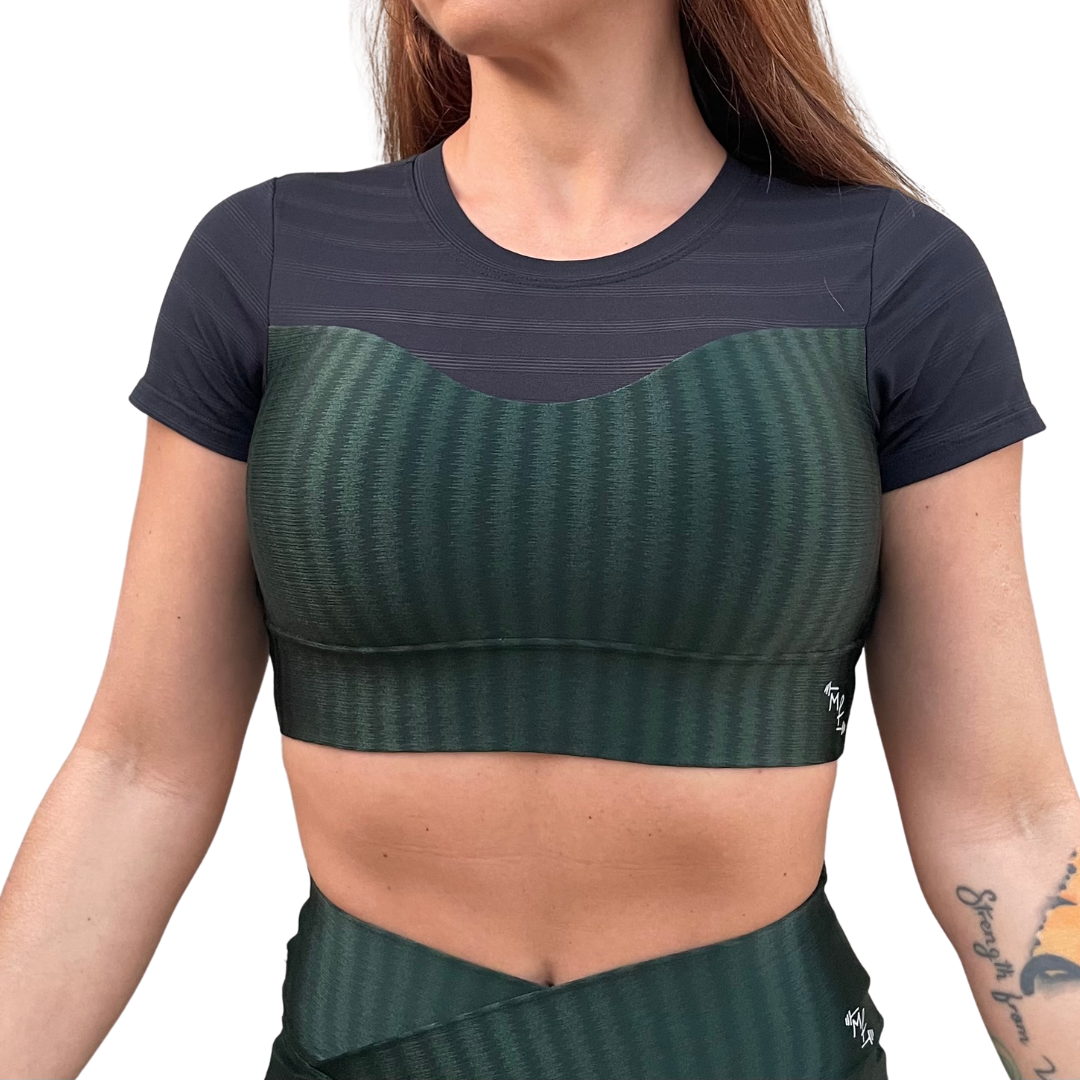 - Cropped top: Removable moulded foam cups.