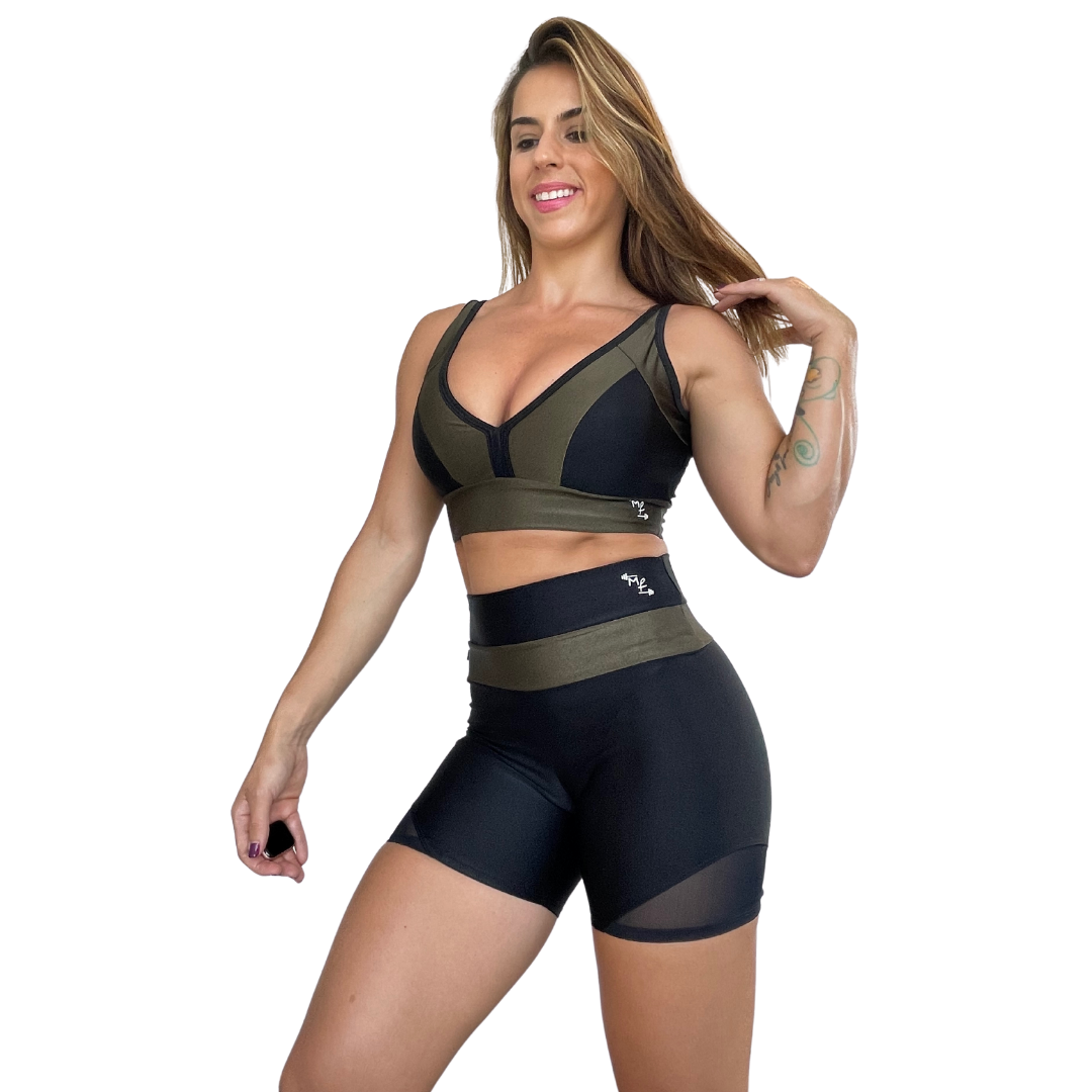 Grit & Action Shorts and Canoe Sports Bra Matching Set - Green