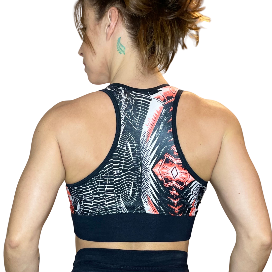 Sports Bra: Features removable moulded foam cups for customisable support.