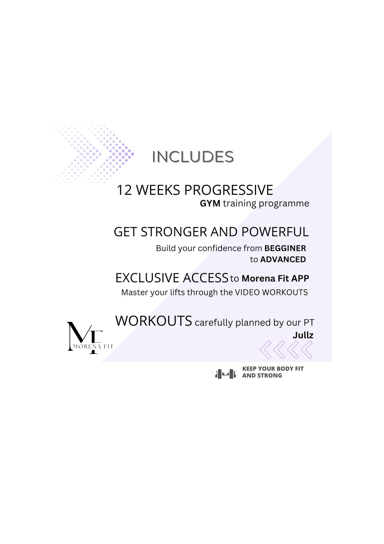 Access your Training Programme through the Morena Fit App - All programmes designed by our amazing Personal Trainer @jullz_wollner.