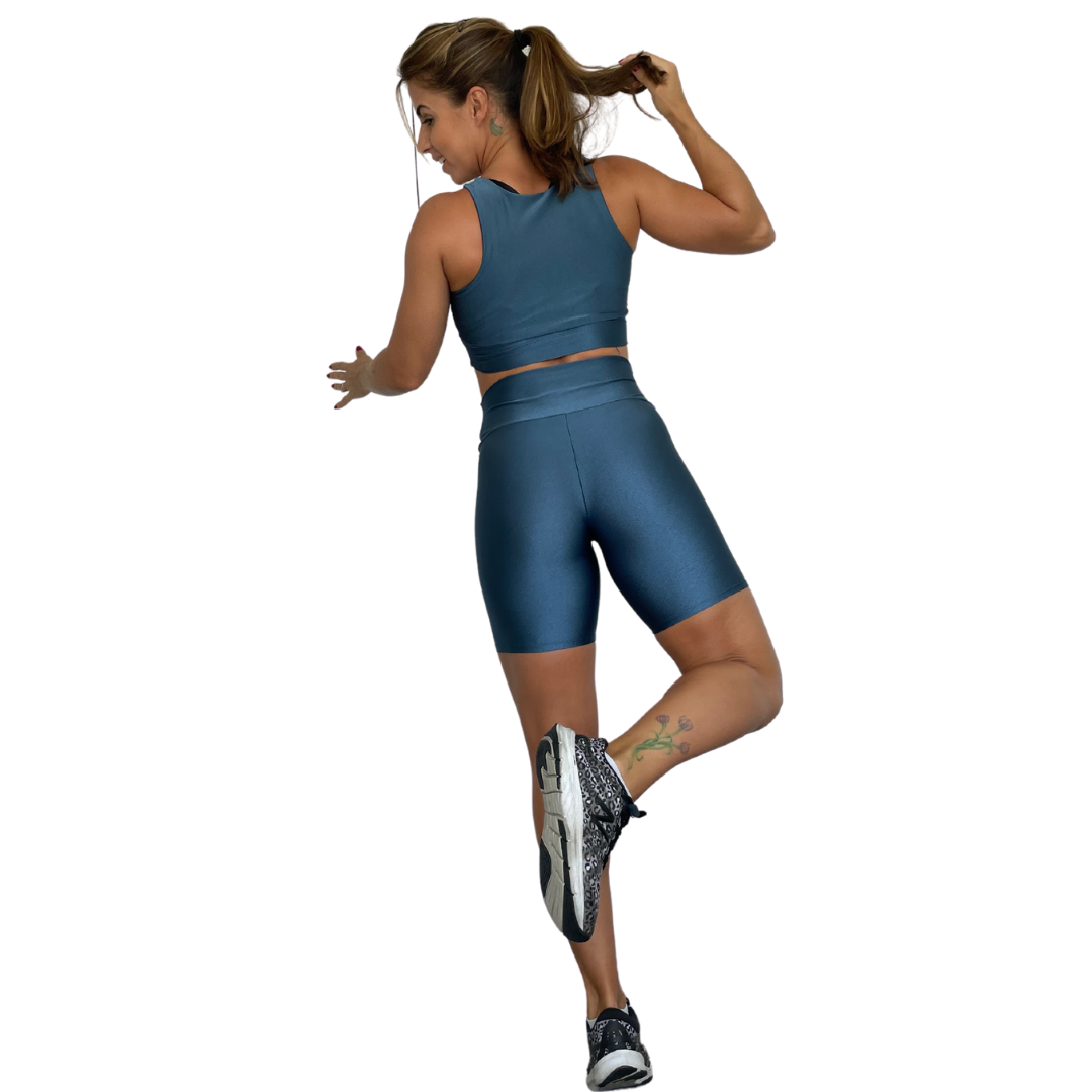 Glow Up Biker Shorts Matching Set - Blue